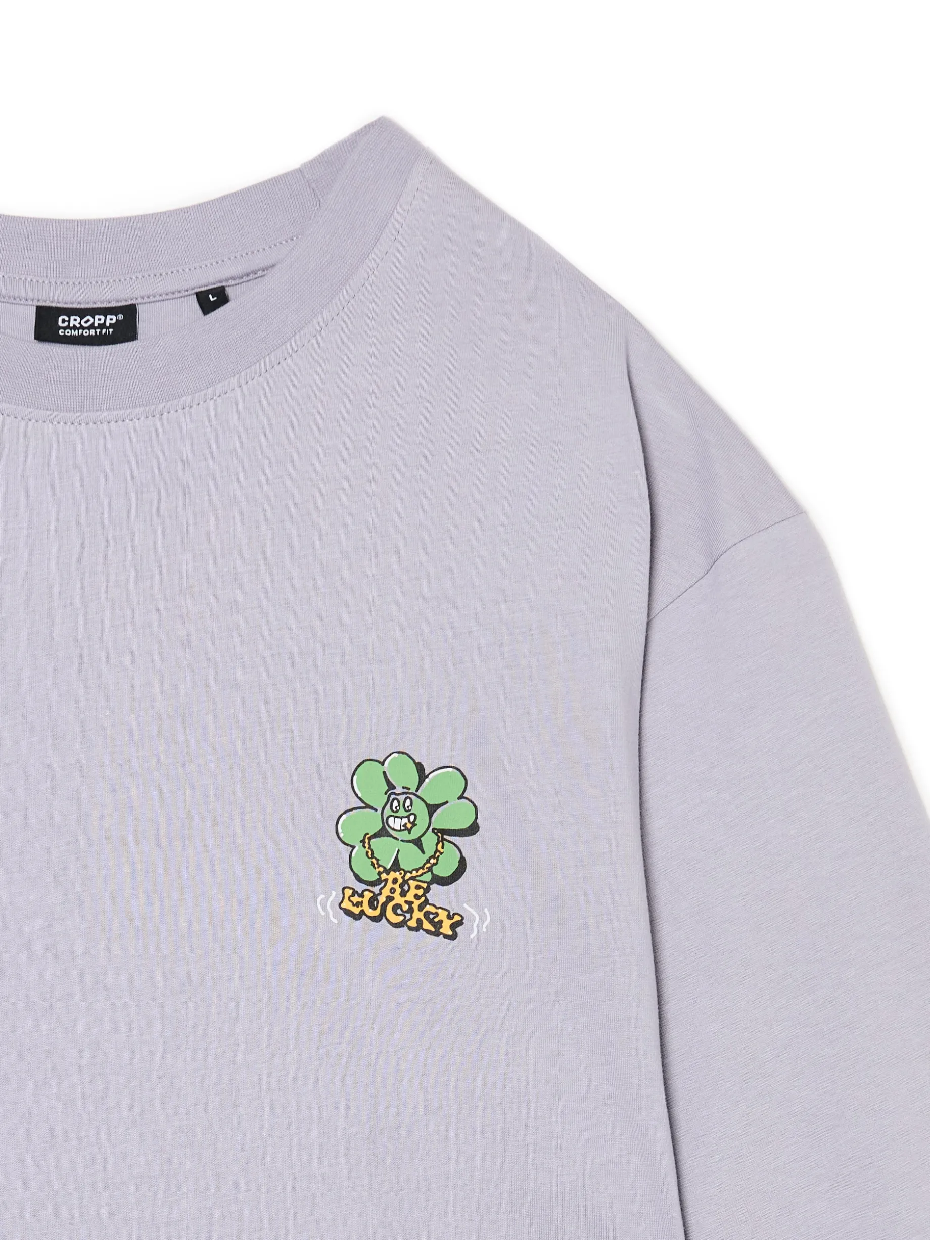 Bawełniana męska koszulka z krótkim rękawem i wyrazistym nadrukiem po obu stronach. Ta koniczyna przynosi podwójne szczęście, sprawdź! 100% bawełny wygodny krój comfort krótkie rękawy z obniżoną linią ramion lekko obniżona linia ramion mały nadruk na piersi, duży nadruk na plecach