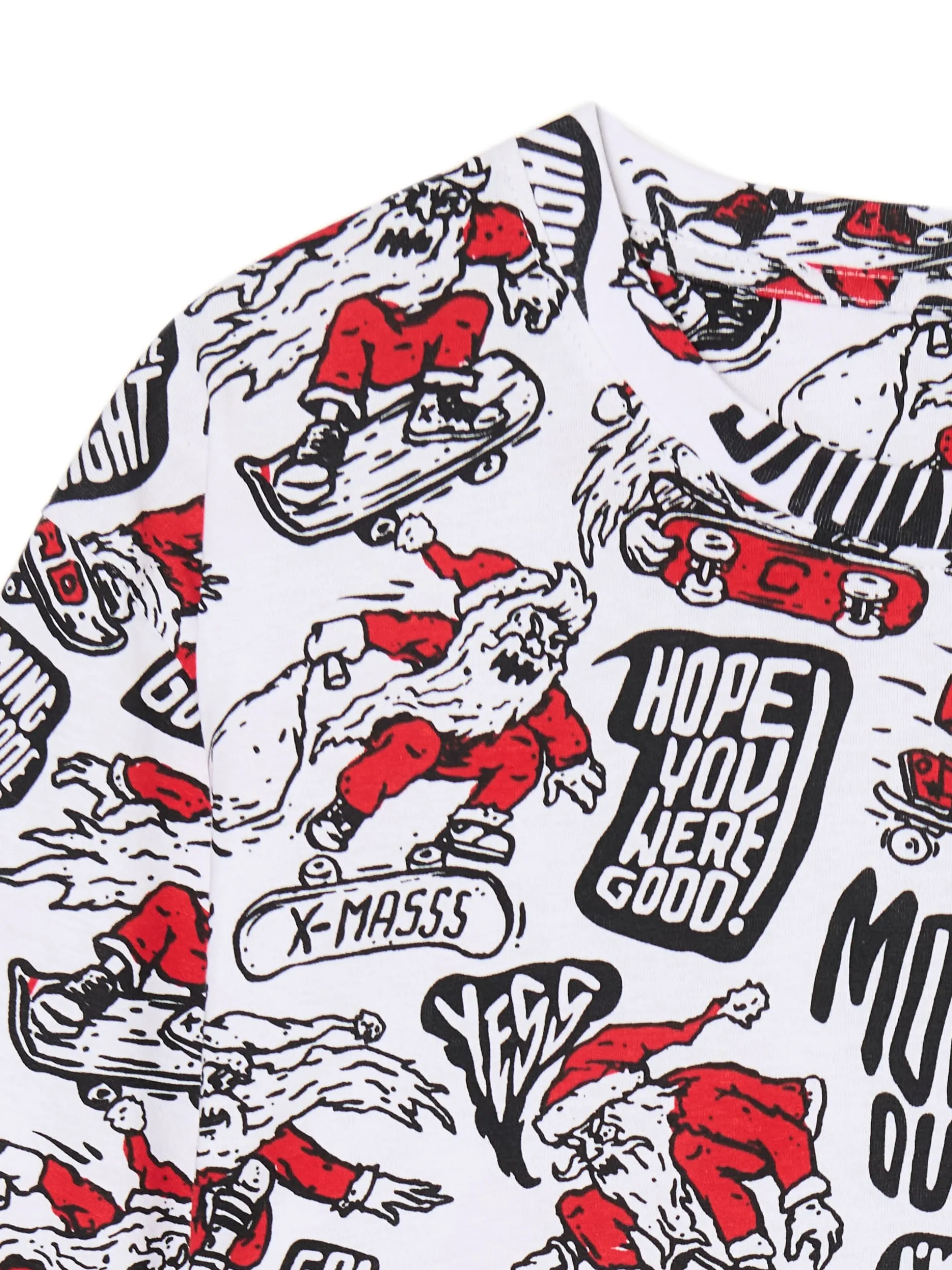 Croppowy Święty Mikołaj jeździ regularnie na deskorolce i robi sztosowe triki. Masz to uwiecznione na tej bawełnianej, męskiej koszulce z krótkim rękawem o fasonie regular. True story! 100% bawełny regularny krój okrągły dekolt krótkie, swobodne rękawy nadruk z motywem Xmas