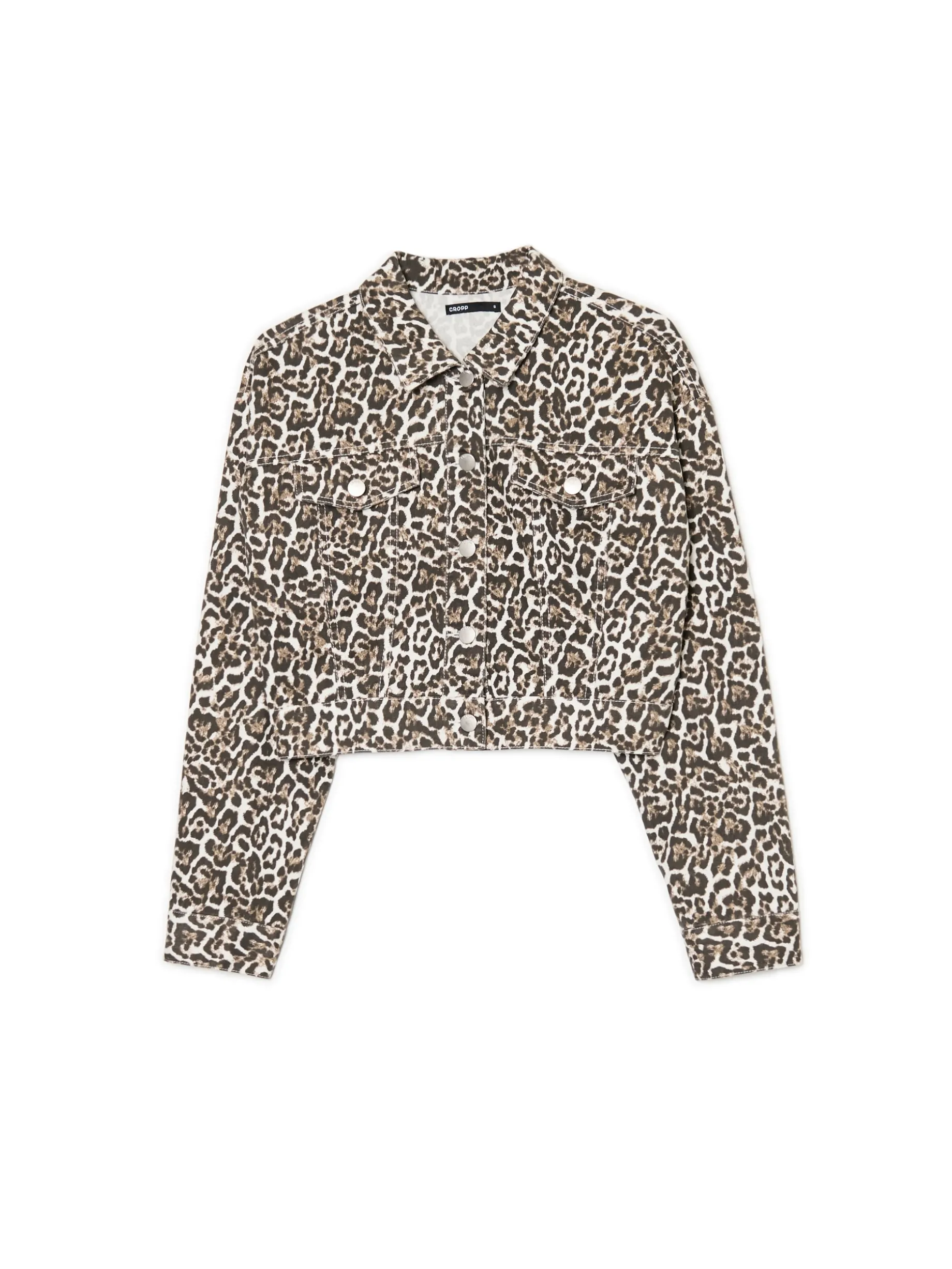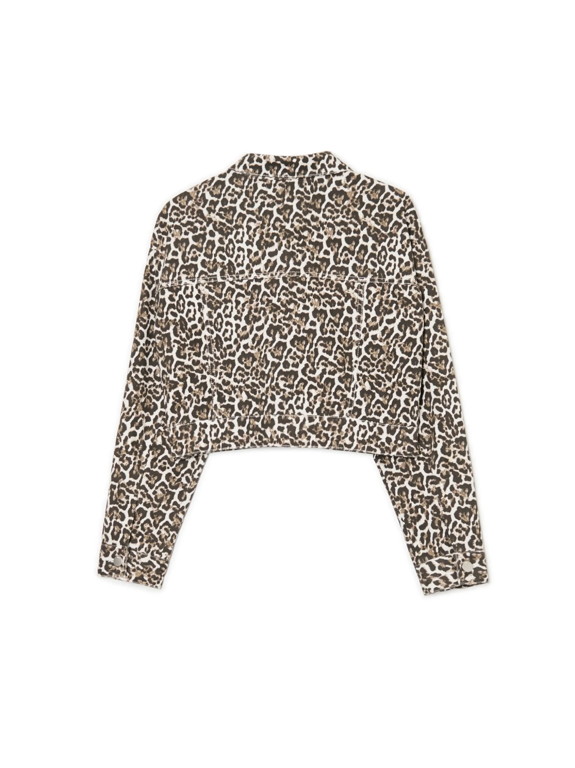 Koszula damska o krótszym kroju, uszyta z mocnej, bawełnianej tkaniny typu twill. Nadruk z modnym motywem w panterkę na całej powierzchni materiału wyróżni Cię w tłumie. 100% bawełny prosty krój z przodu jednorzędowe zapięcie na guziki kołnierz z wąskimi klapami długie rękawy zapinane na guziki dwie zapinane kieszenie piersiowe okryte patkami zwierzęcy wzór Wzrost modelki: 177 cm
