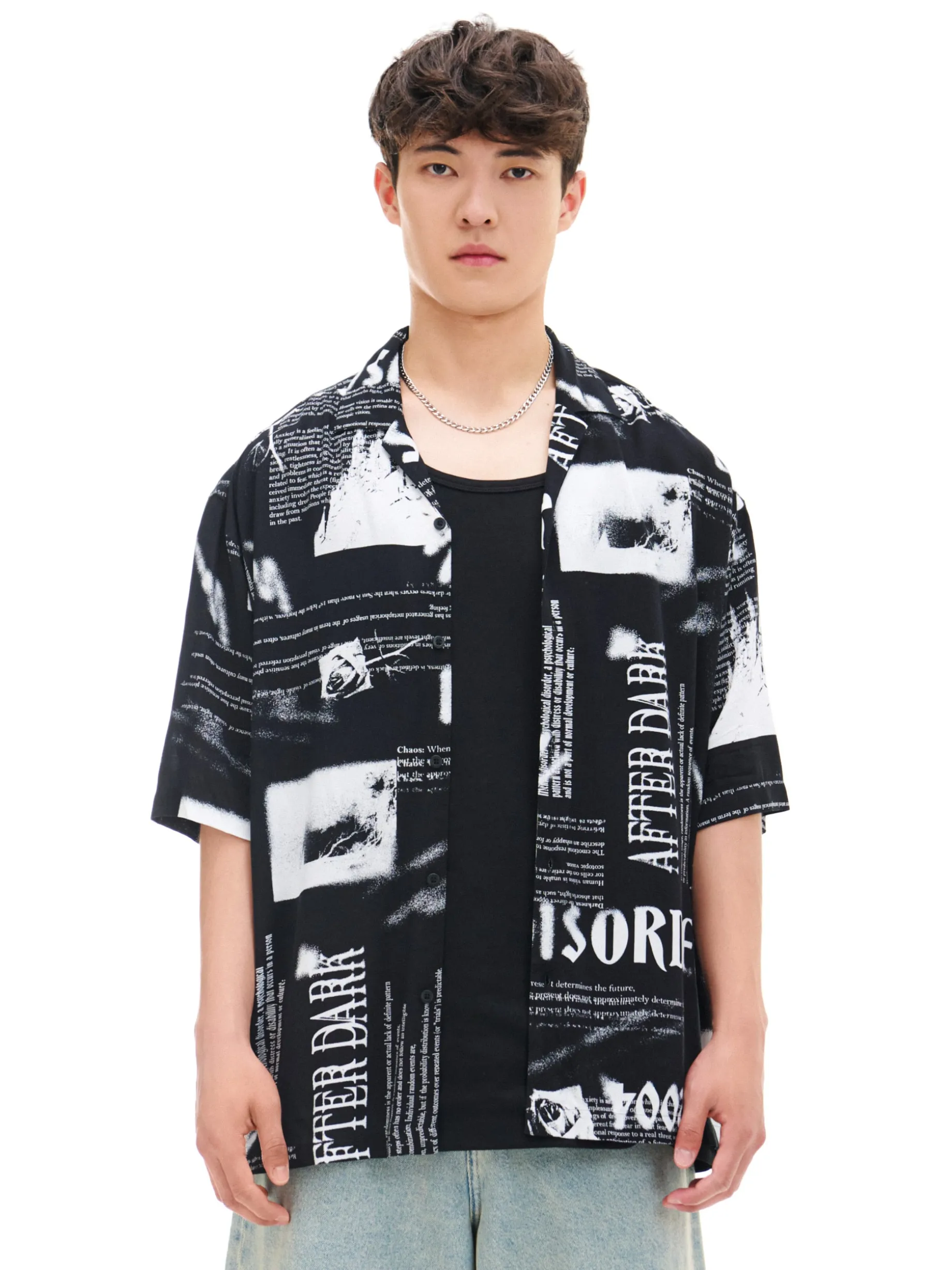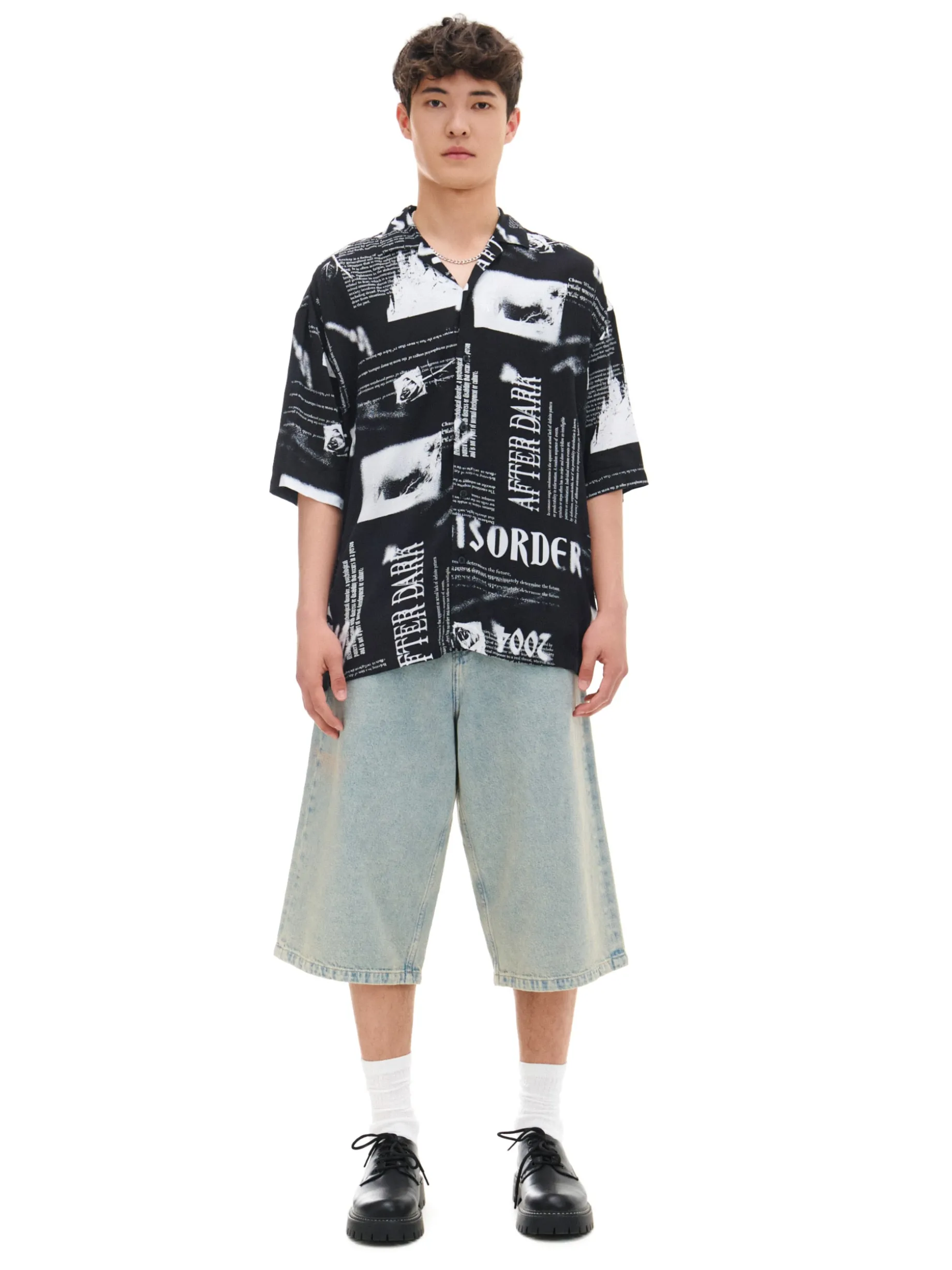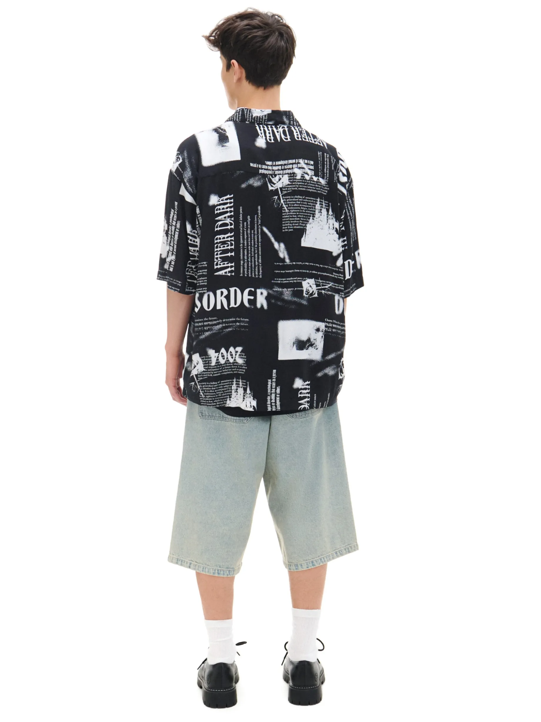 Męska czarna koszulka regular fit ze wzorzystym printem idealnie pasuje zarówno na wyjście do miasta, jak i bardziej formalnych miejsc. lekki, zwiewny materiał luźny krój z kołnierzykiem krótkie, wygodne rękawy Model prezentuje produkt w rozmiarze M. Wzrost modela: 185 cm